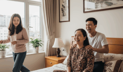 Chính quyền xã Khe Sanh bố trí công sở không sử dụng sau sáp nhập làm nơi ở tạm thời cho người dân. Trưa 18/11, các hộ dân có nhà bị sạt lở được hàng xóm nấu cơm và ngồi ăn tập trung.